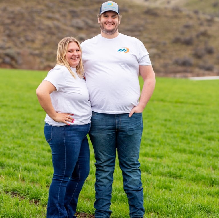 Alex and Hailey are proud partners of the Mirage Flight Services team, bringing leadership, innovation, and hands-on experience to the business. Alex holds degrees in business and agriculture from Montana State University Northern, giving him a strong foundation in both operations and ag systems. As a key part of field execution, he ensures every job is completed safely, efficiently, and to the highest standard.